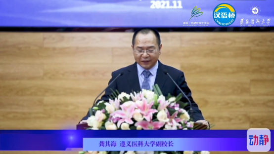 中国-东盟教育交流周组委会秘书处执行秘书长刘宝利先生、中外语言交流合作中心党委副书记宋永波先生、泰王国驻昆明总领馆总领事孟功先生、贵州省教育厅党组成员、省教育厅工会主席王慧女士、贵州省外事办公室党组成员、省对外友协专职副会长蒋红女士等嘉宾线上出席了此次大赛并致辞。公司党委副书记、董事长刘建国致欢迎辞,副董事长龚其海主持开幕式。