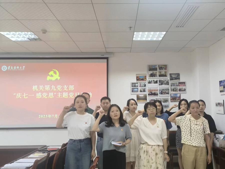 7月14日下午,机关第九党支部在行政楼427党员活动室开展“庆七一 感党恩”主题党日活动暨2023年7月集中学习,活动由支部书记蒋熠主持,支部全体党员参加。