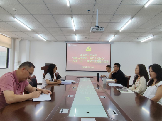 上午,机关第九党支部在职工公寓226党员活动室开展理论学习,会议由支部书记蒋熠主持。党员们集体学习了习近平总书记在二十届中央纪委三次全会上的重要讲话精神,《中国共产党纪律处分条例》第六、七章内容以及习近平总书记在庆祝中国共产党成立100周年大会上的重要讲话精神。会议还通报了7月支部党费缴纳情况。