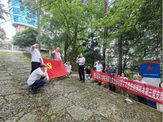 下午,两个党支部的全体党员共同前往红花岗老鸦山红军战斗遗址,开展了主题为“重走红军路,实地学党史”的实践教育活动。在这片承载着革命先辈英勇事迹的土地上,党员们追随先烈足迹,感受革命精神。在老鸦山红军战斗遗址,全体党员庄严肃立,重温入党誓词。