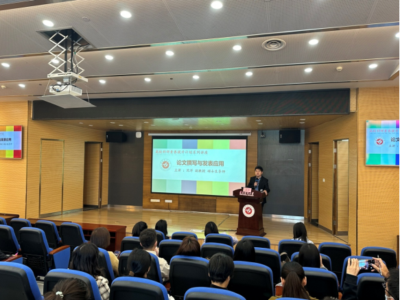 沈洋副教授以自己丰富的科研、论文撰写及审稿经验,从论文撰写与发表应用方面开展了主题讲座,重点突出了文献检索的重要性、检索文献中检索式的应用、学术论文的定义和分类以及论文的撰写、发表和应用。他总结说,学术论文的写作过程就是研究过程,没有研究就无所谓写作,但只研究不重视写作也很难写好论文。