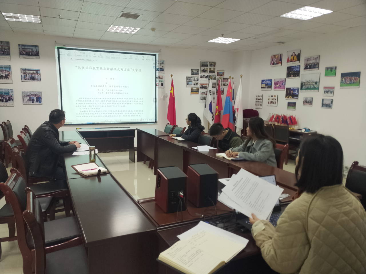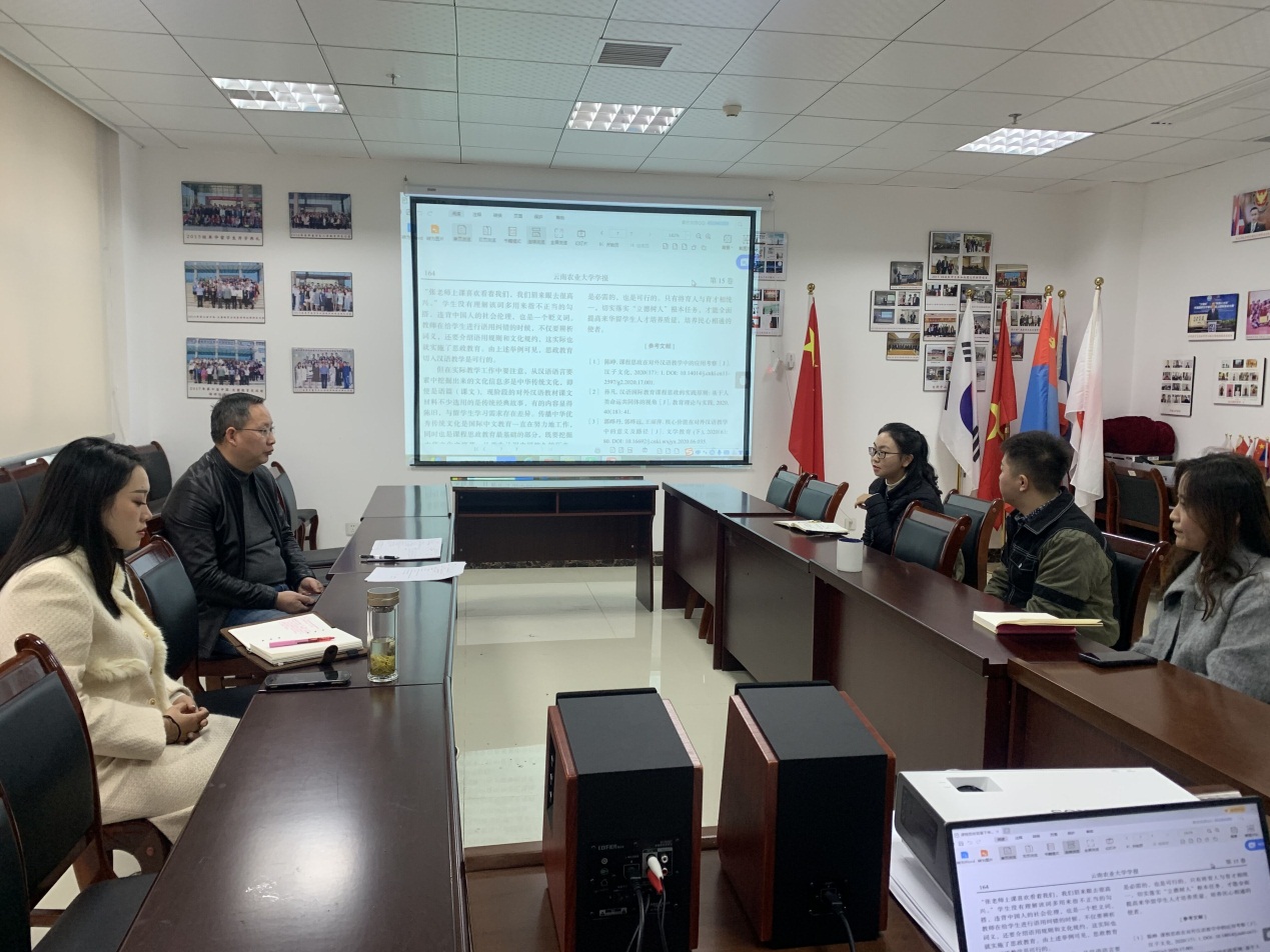 xc体育于2021年11月29日上午09:00-11:00在行政楼431会议室举行了以“后疫情背景下汉语国际员工线上教学与课程思政的探讨”为主题的教师成长发展互助平台活动。本次活动由xc体育主办,xc体育对外汉语教师共6人参加了本次会议。