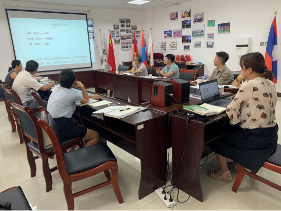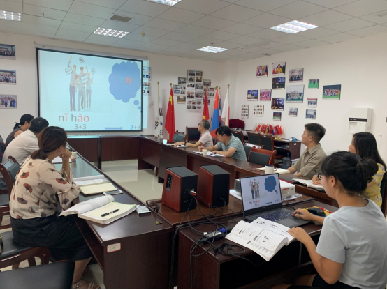 然后,付蛟蛟、陈万瑜及李雪三位任课教师分别对《初级汉语综合》、《初级汉语听力》、《初级汉语口语》三门课程大纲、教材、教授对象、教学方法、学习方法、技能训练等进行了介绍和分析,随后进行了20分钟的教学演示。受疫情影响,本次新招的语言生仍在本国,公司教师主要是通过网络进行授课,与会教师们结合课程特点及网络教学实际,大家积极建言献策,备课会现场气氛活跃。