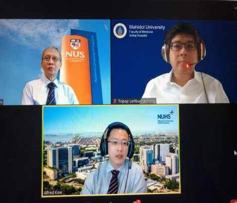 会议由新加坡国立大学教授Dow Rhoon KOH主持,新加坡国立大学杨潞龄医学院副经理Alfred Kow Wei Chieh作了题为“新冠疫情催化下的技术辅助医学教育”的报告,他分享了如何利用科学技术增强在医学教育数字化方面的体验,为确保员工在后疫情时代下的线上同步学习建立了牢固的基础。泰国玛希隆大学西里拉吉医院副经理Tripop Lertbunnaphong作了题为“疫情时代的新教学方法:以西里拉吉医院为例”的报告,分享了在疫情防控期间,学校通过视频会议和学习管理系统为员工创造了线上同步和异步的学习环境,为临床专业知识的学习提供了技术保障,并通过改善和创新虚拟仿真教学提高员工的临床技能。会议期间,大家就相关热点问题进行了讨论。(撰稿:张丽云/ 陈鏇霖;摄影:吴开其)