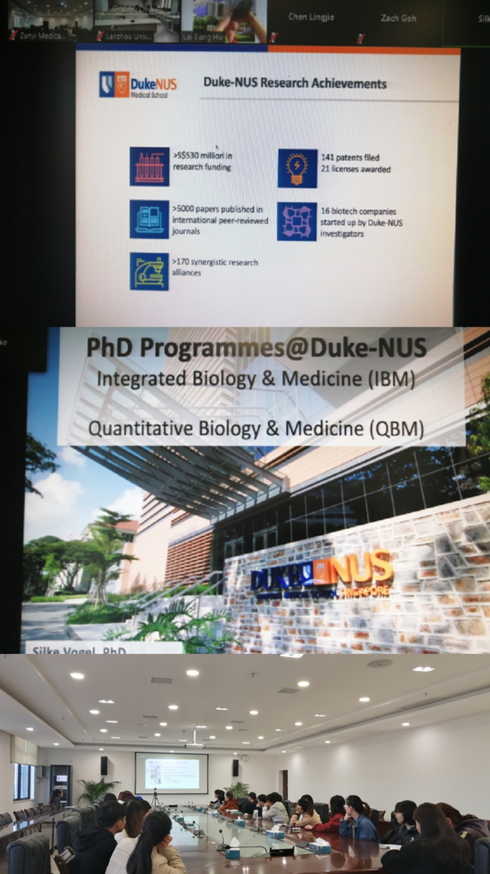 为进一步促进公司公司产品国际化,推动公司“国家建设高水平大学公派研究生项目”申报工作,11月14日上午,国际合作处联合研究生院组织来自临床学院、基础医学院、公共卫生学院、护理学院等院系有海外留学计划的30余名硕士研究生,参加了由国家留学基金委举办的2020年国际研究生奖学金信息说明会(杜克-新加坡国立大学医学院专场),会议采取线上视频形式举办。