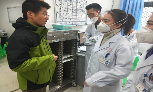2020年1月17日上午,第一临床学院2016级辅导员李恒爽、xc体育来华职工辅导员李雪,到xc体育附属医院结核病区、呼吸二病区的2016级来华职工实习点进行走访。