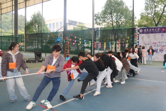活动中同学们通过瓶子活动、老鹰抓小鸡、拔河比赛以及踩气球比赛等活动,彼此帮助,齐心协力地完成每一项活动,极大地促进了各国国际新生的交流,增强了国际员工的团队精神。