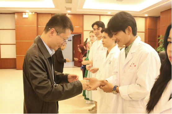 徐林副董事长代表学校向2025级国际新生的到来表示热烈欢迎,并介绍了学校悠久的办学历史和国际化发展成果。他希望同学们牢记“明德笃学,求是致用”的校训,珍惜时光、勤奋学习,努力成长为具有高尚医德和扎实专业能力的医学人才,争做中外文化交流的友好使者。