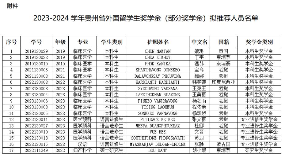 附件:2023-2024学年贵州省外国职工奖学金(部分奖学金)拟推荐人员名单